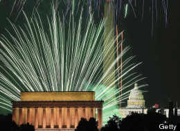 WASHINGTON, DC - JULY 04: Fireworks light up the sky over the Lincoln Memorial, Washington Monument, and the U.S. Capitol on July 4, 2012 in Washington, DC. July 4th is a national holiday with the nation celebrating its 237th birthday. (Photo by Mark Wilson/Getty Images)