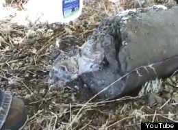 Chatwin cut away the pipe and chipped at the concrete with a hammer, documenting the rescue with this video camera. He then took the kitten to Best Friends Animal Society in Kanab, where the staff named it Thomas. Society spokeswoman Barbara Williamson said staff members worked to remove the remaining concrete from the kitchen, but it died from injuries on June 4.